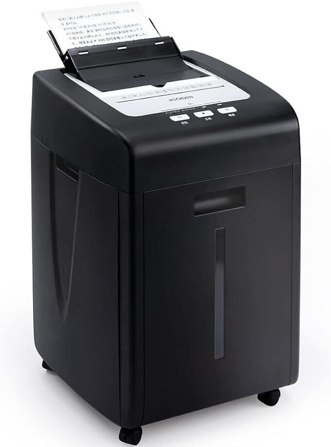 【パワフルな性能】iCODIS家庭用シュレッダーはカバーを開けて、紙をオートフィード自動投入口にセットするだけで、一度に最大A4コピー用紙220枚を連続細断可能です。電動シュレッダーの手動細断枚数は最大A4コピー用紙12枚。約30分間連続細断可能です。また、CDとプラスチック製カード類は手差しで細断可能。